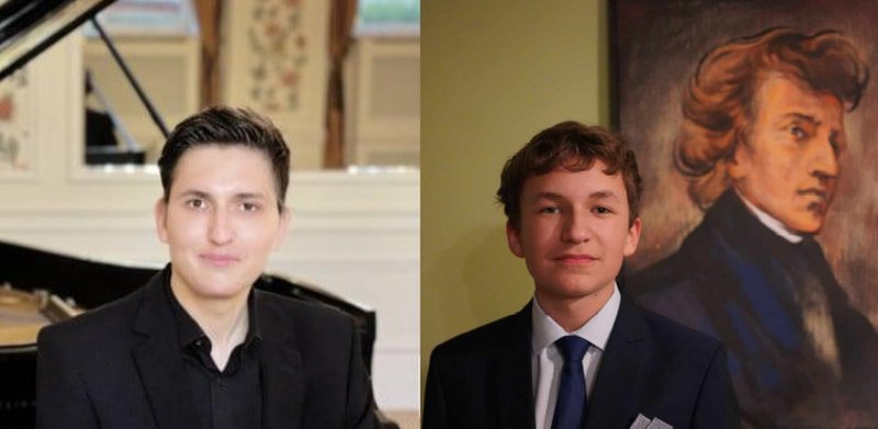 Marcin Pękala, absolwent warszawskiego Uniwersytetu Muzycznego, obecnie studiujący pod kierunkiem prof. Janusza Olejniczaka, jest laureatem konkursów ogólnopolskich i zagranicznych, Występował z koncertami solowymi oraz kameralnymi m.in. w Filharmonii Wiedeńskiej, w spotkaniach muzycznych „Chopin en Vacanses”. Drugi z młodych muzyków – trzynastoletni Arkadiusz Świech – ma także za sobą wiele występów publicznych. Oklaskiwała go m.in. publiczność festiwali Chopinowskiego w Chopin Boutique w Warszawie i Opery na Zamku w Szczecinie. Ten chłopiec od najmłodszych lat jest zafascynowany muzyką Chopina, wszystkie utwory gra ze słuchu.