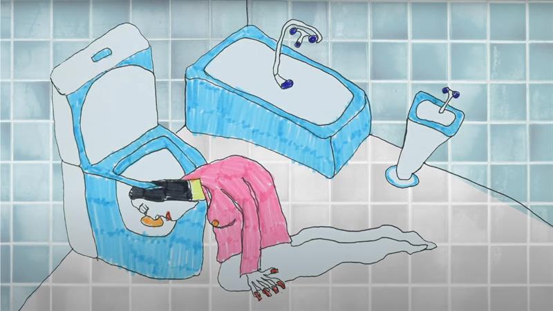 Jakie wymioty - kobieta kontempluje zapach (smak) uryny (własnej? cudzej?) - na twarzy widoczna jest ekstaza...