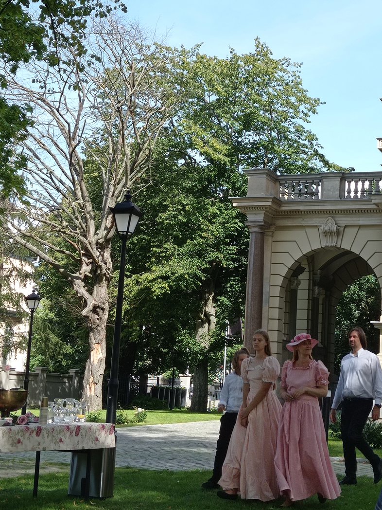 Zgodnie z wcześniejszą sugestią organizatorów, niektóre z osób biorące udział w śniadaniu pojawiły się z elementami garderoby nawiązującymi do czasów pierwszego właściciela willi - Augusta Lentza, choćby panie przyszły w pięknych kapeluszach.