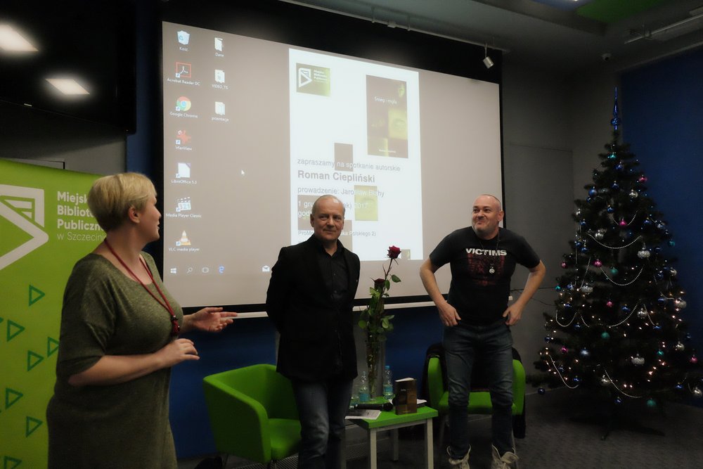 Nasz redakcyjny kolega Roman Ciepliński promował w Promediach swoją najnowszą powieść zatytułowaną “Śnieg i mgła”. Jarosław Błahy, który poprowadził spotkanie, napisał o tej książce tak: “Ciepliński ma zdolność zarówno do nadania postaciom krwistości, jędrności, pulsującego układu kostnego, jak i czarnego humoru, karnawalizacji rzeczywistości w literaturze, groteski w wymiarze zderzenia tragizmu z komizmem, prawdy z fałszem, dobra ze złem, piękna z brzydotą”.