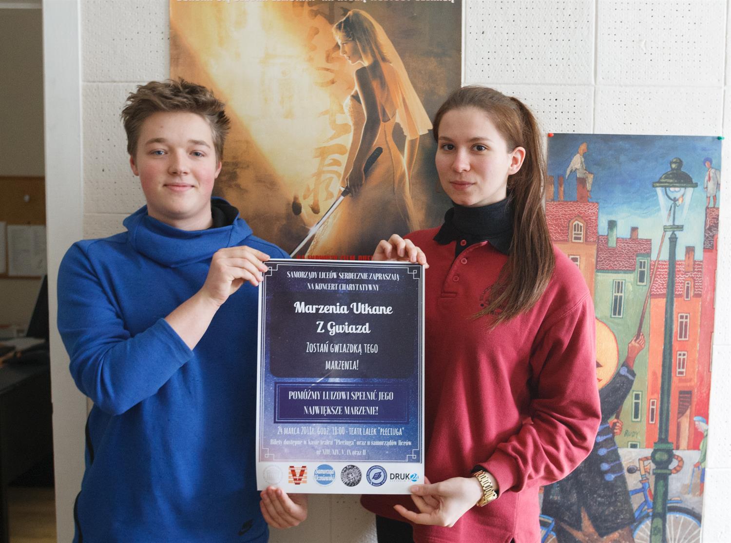 Na zdjęciu: Współorganizatorzy koncertu, od lewej: Michał Borkowski, uczeń IX LO i Kamila Sobczyk, uczennica XIII LO