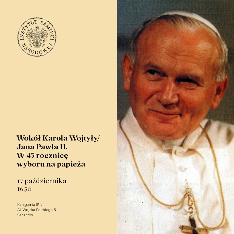 W księgarni IPN przy al. Wojska Polskiego 5 w Szczecinie odbędzie się we wtorek (17.10) spotkanie pt. "Wokół Karola Wojtyły/Jana Pawła II. W 45. rocznicę wyboru na papieża". Wydarzenie rozpocznie się o godz. 16.30.