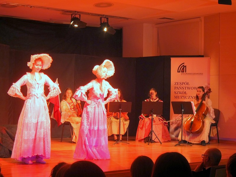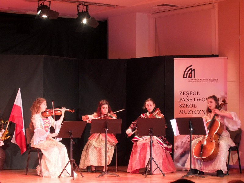 Nie mogło wtedy zabraknąć muzyki! Zespół kameralny zaprezentował zatem m.in. drugą część z pierwszego kwartetu d-moll Stanisława Moniuszki. Publiczność wysłuchała też poloneza „Pożegnanie Ojczyzny" Ogińskiego i walca E-dur z opusu 47 Chopina. Wzruszająco zabrzmiała polska poezja przedstawiona przez młodzież, choćby Tadeusza Różewicza, Wisławy Szymborskiej i Zbigniewa Herberta.