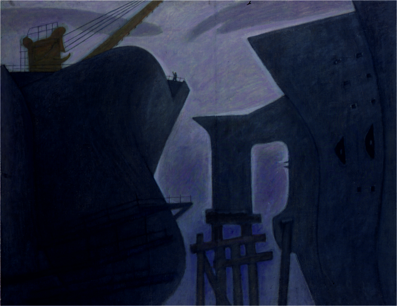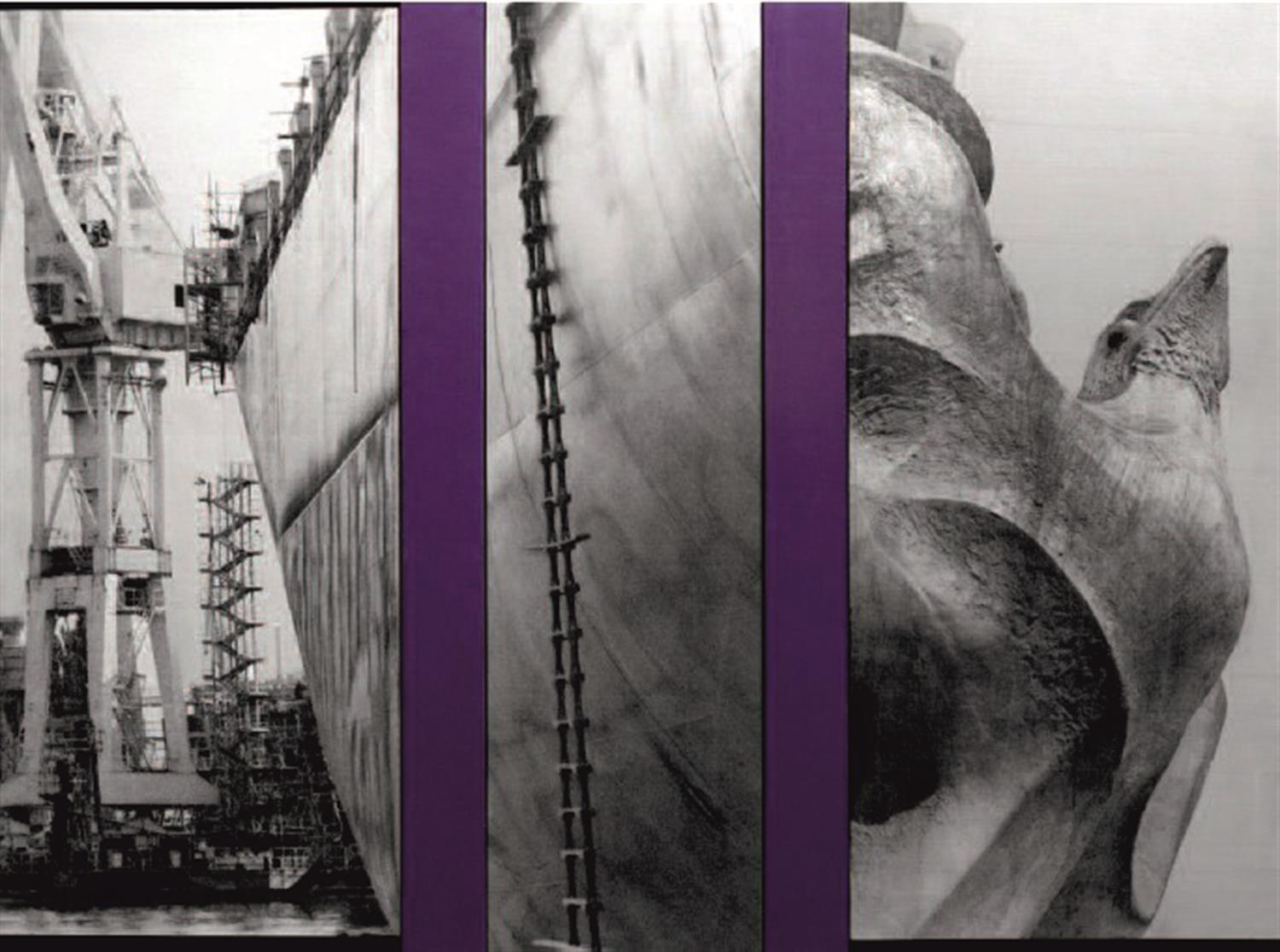 Autorkami prac są: Halina Bielczyk i Małgorzata Łempicka-Brian. Pierwsza z artystek, czerpiąc z tematów rozwijanych jeszcze w nurcie socrealizmu, poprzez zastosowaną technikę odwołuje się do prymitywizmu. Jego stylistycznymi wyznacznikami są deformacje lub brak perspektywy, subiektywizm, proste, niemal dziecięce techniki malarskie. Druga natomiast w swoich kolażach nawiązuje bezpośrednio do historii Szczecina i stoczni AG Vulcan Stettin, przemianowanej po wojnie na Stocznię Szczecińską im. Adolfa Warskiego.