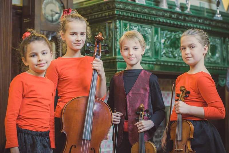Na zdjęciu: Kwartet fortepianowy (Aleksandra Kopeć - skrzypce, Mateusz Strycharczyk - skrzypce, Malwina Pękalska - wiolonczela, Blanka Kojalewicz - fortepian), który zwyciężył w konkursie oraz otrzymał nagrody specjalne od marszałka Olgierda Geblewicza i senatora RP Grzegorza Napieralskiego.