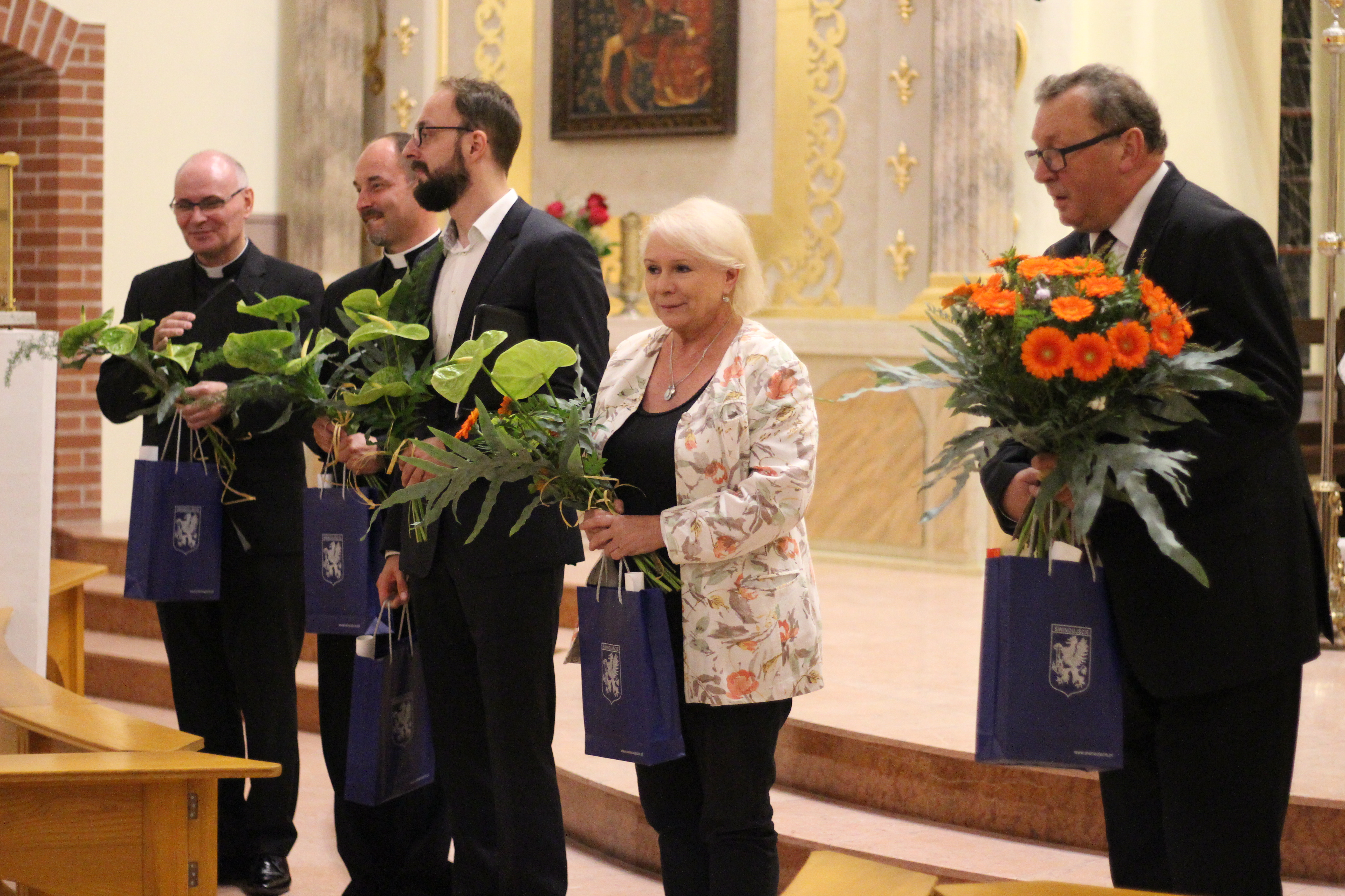 Na zdjęciu: Małgorzata Klorek, kierownik artystyczny festiwalu w towarzystwie maestro Andrzeja Chorosińskiego i księży tenorów z Servi Domini Cantores