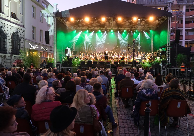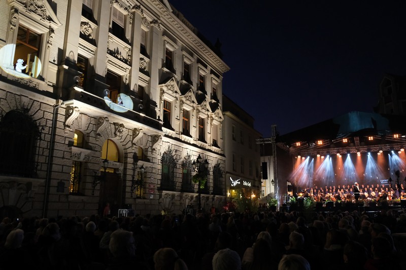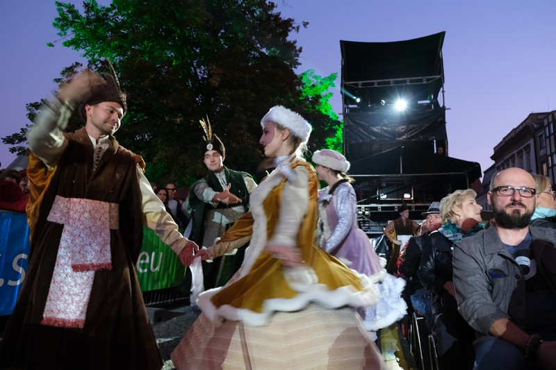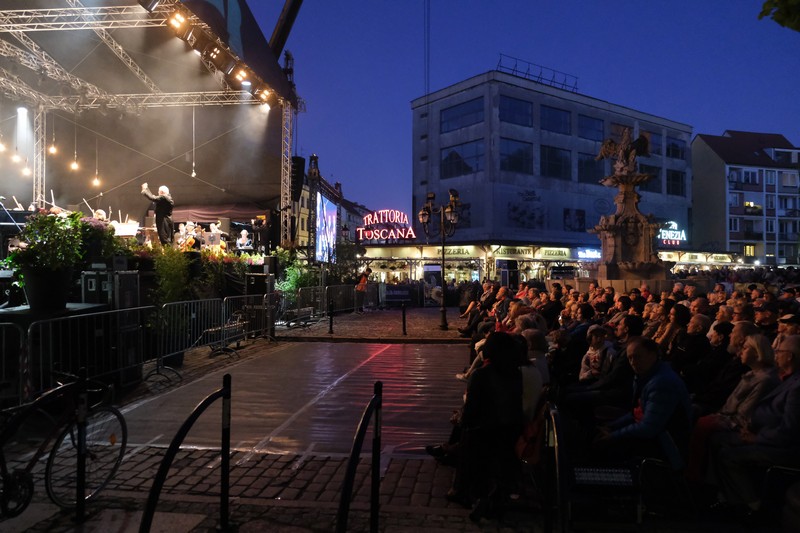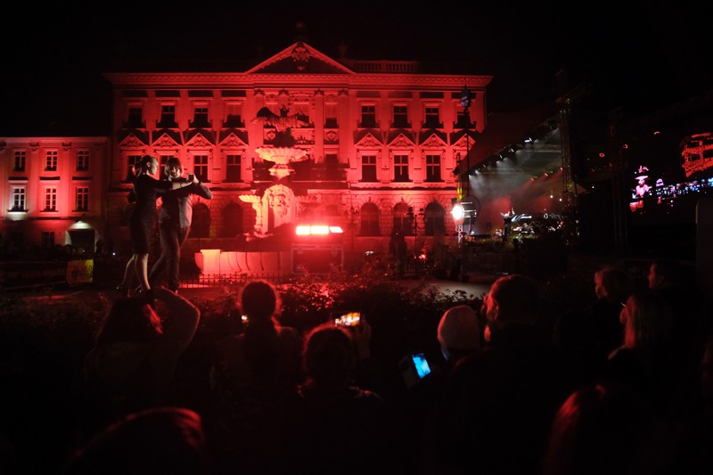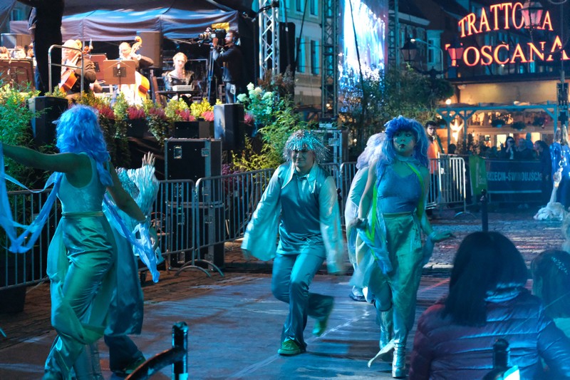 Publiczność oklaskiwała porywające widowisko z udziałem gościa specjalnego Waldemara Malickiego, solistów: prof. Katarzyny Dondalskiej (Akademia Sztuki w Szczecinie) i Leszka Świdzińskiego (Polska Akademia Królewska w Warszawie), Chóru Akademii Morskiej oraz Orkiestry Filharmonii Koszalińskiej pod batutą Bernarda Chmiela, a też zespołu pieśni i tańca Ziemi Goleniowskiej INA. Artyści zabrali szczecinian w podróż przez muzyczne style i epoki - od Verdiego i Pucciniego po Gershwina i Andrew Lloyda Webbera, zahaczając o walce Straussa i tango w stylu Piazzolli, a w interpretacji tancerzy szczecińskiej Akademii Tanga Adriana i Doroty Grygierów. Muzyczna kanwa posłużyła aktorce Aleksandrze Kopińskiej-Szykuć (Teatr Polski) do przedstawienia najważniejszych zabytków Starego Miasta i najsłynniejszych postaci przez wieki związanych ze Szczecinem - od caryc Katarzyny Wielkiej i Zofii, przez Hansa Chrystiana Andersena i Carla Loewe. Nie zabrakło pokazów akrobatycznych w wykonaniu Teatru Ocelot, a też efektownej scenografii, w której wiodącą rolę zagrał Pałac pod Globusem.