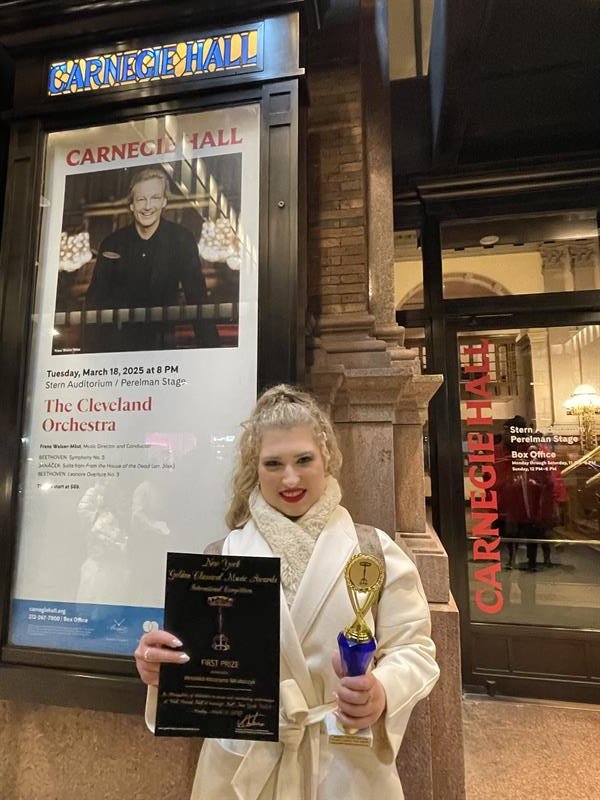 Weronika Włodarczyk, która kształci się pod okiem prof. Sylwii Burnickiej-Kalischewskiej, zdobyła pierwsze miejsce i złoty medal w międzynarodowym konkursie New York Golden Classical Music Awards International Music Competition 2025. Dzięki temu mogła wziąć udział w koncercie w Carnegie Hall.