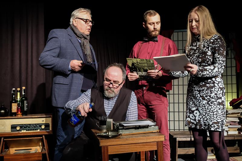 Na zdjęciu: Aktorzy - Michał Janicki, Mirosław Kupiec i Piotr Bumaj oraz autorka sztuki, Patrycja Fessard