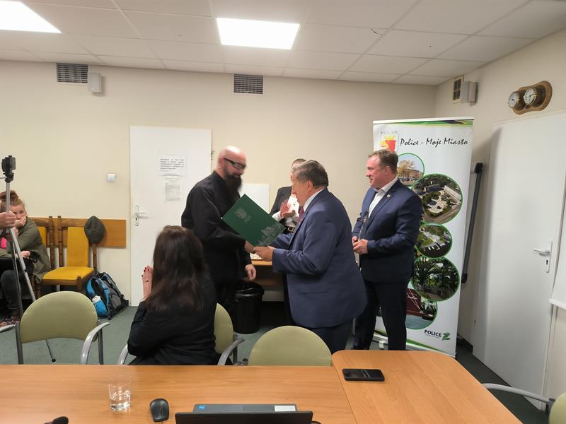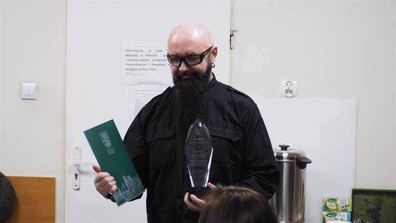 Nagrodę za osiągnięcia w dziedzinie twórczości artystycznej, upowszechniania i ochrony kultury w Gminie Police otrzymał Less R. Hoduń – poeta, pisarz, muzyk, wokalista, kompozytor, grafik. Artysta tuż po odebraniu jej od burmistrza Polic Władysława Diakuna zwrócił się m.in. do młodych stypendystek.