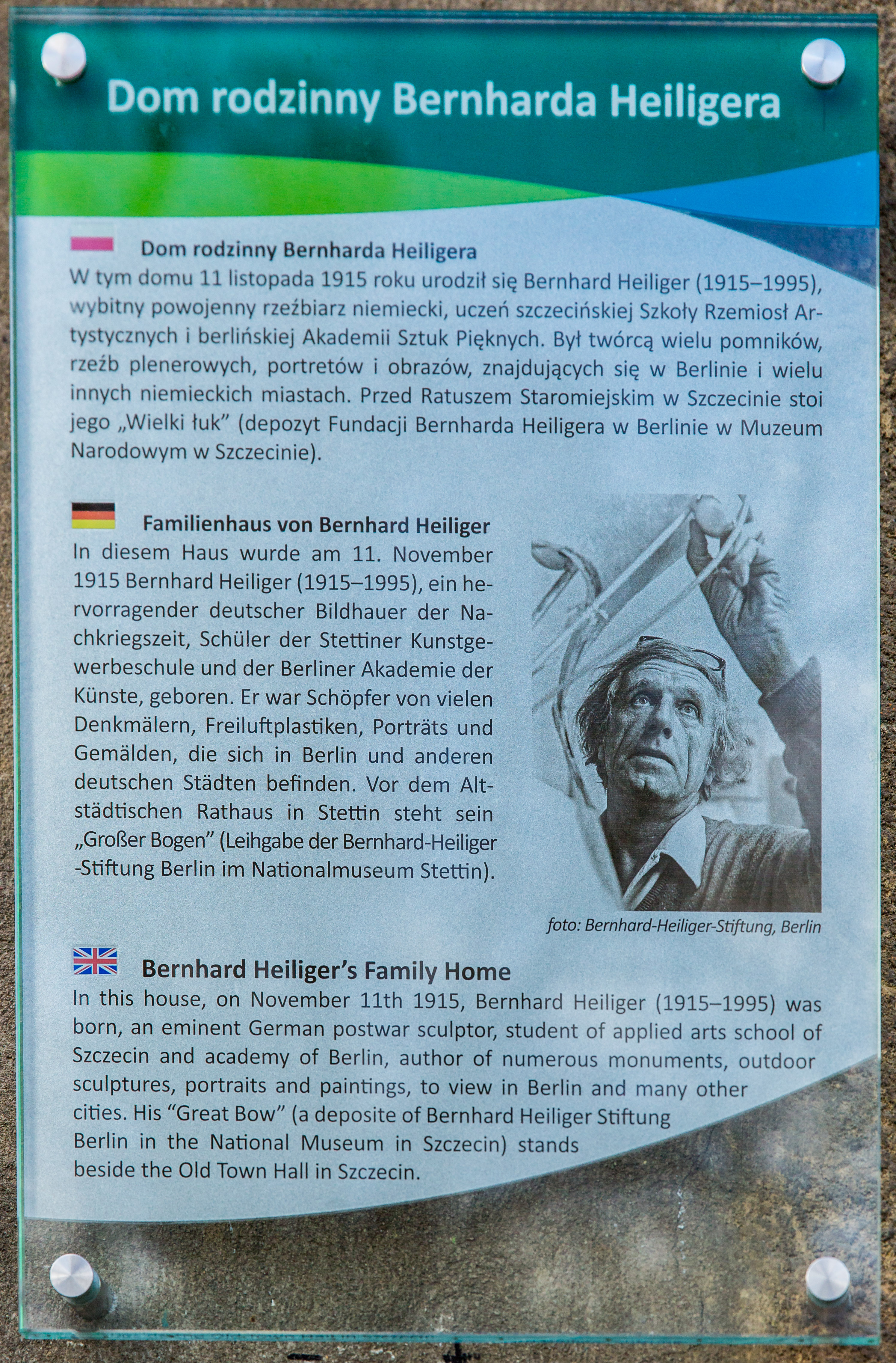 Kilkadziesiąt osób uczestniczyło w odsłonięciu tablicy poświęconej wybitnemu rzeźbiarzowi Bernhardowi Heiligerowi. Zawisła ona na elewacji rodzinnego domu artysty, przy ulicy Swarożyca 11 w Szczecinie. W uroczystości wzięli udział przedstawiciele Urzędu Miasta i Muzeum Narodowego. Ta ostatnia instytucja zaprasza w sobotę na cykl imprez, zorganizowanych z okazji setnej rocznicy urodzin Heiligera.