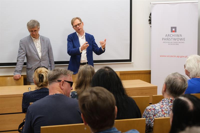 Wykładowi Pawła Guta z uwagą przysłuchiwała się pełna sala gości. Wygląda na to, że lokalna społeczność jest ciekawa wiedzy, którą posiadają szczecińscy archiwiści. Pracownicy archiwum zorganizowali również oprowadzenie po całym budynku,.