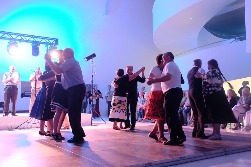 Mazurki, starodawne oberki i inne tradycyjne tańce królowały w sobotni wieczór (8 września) w holu Filharmonii im. Mieczysława Karłowicza w Szczecinie.