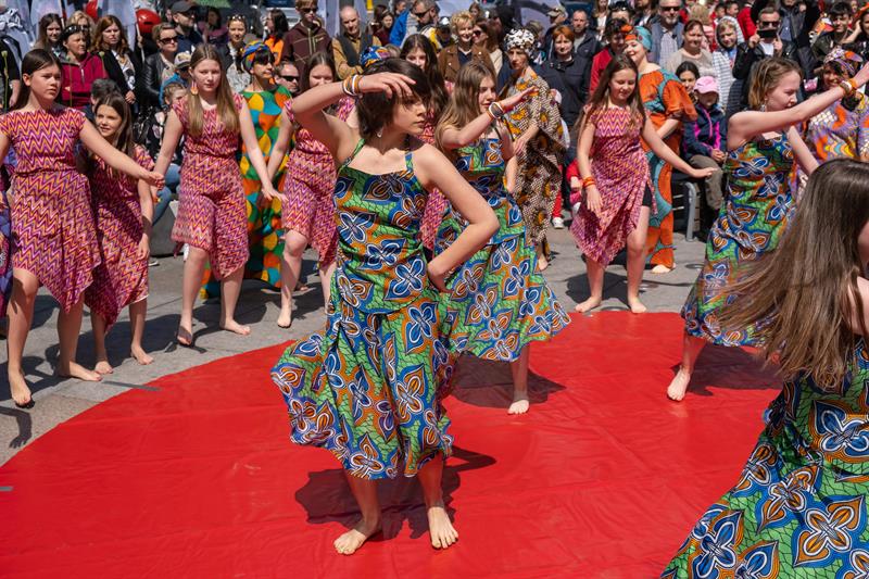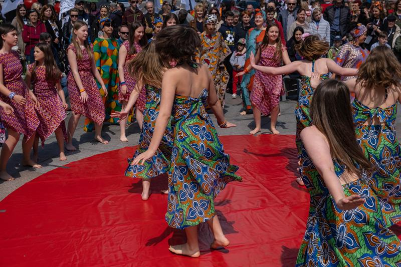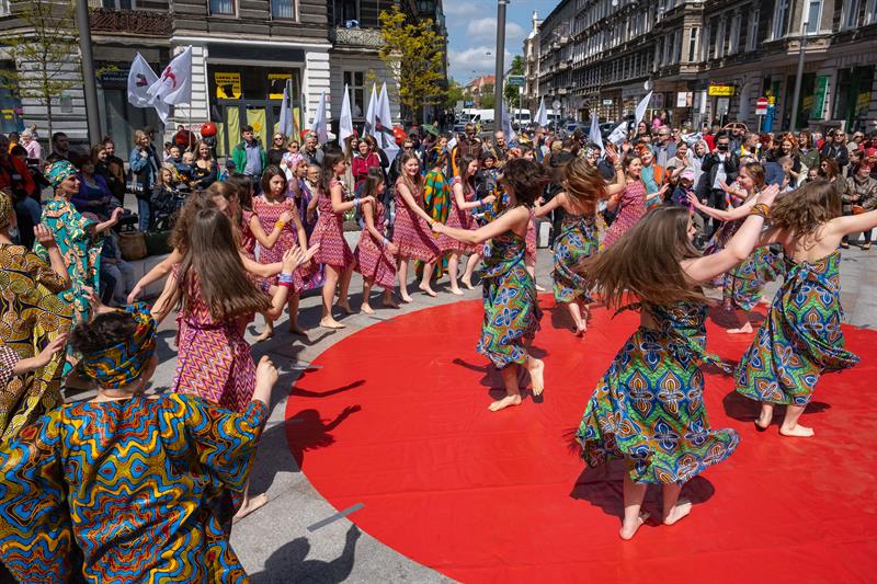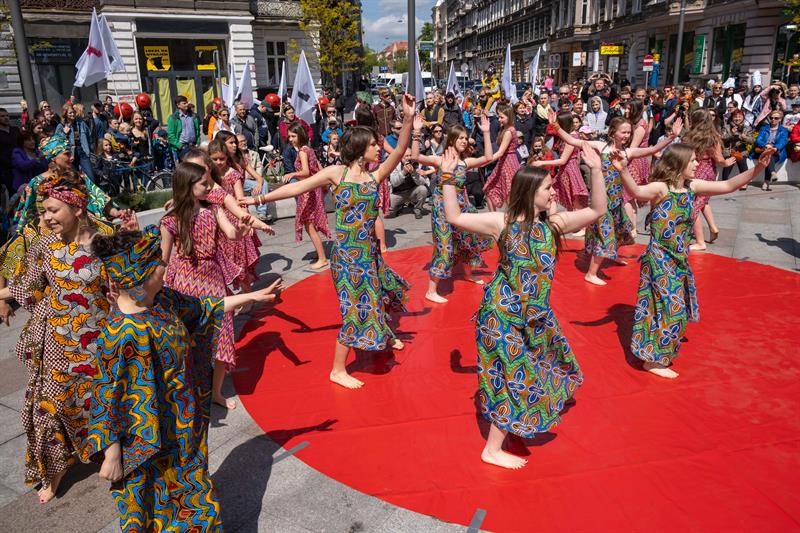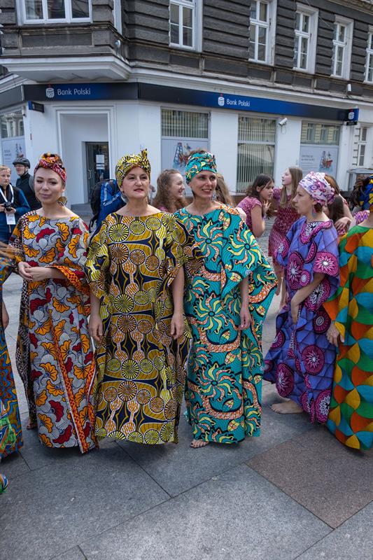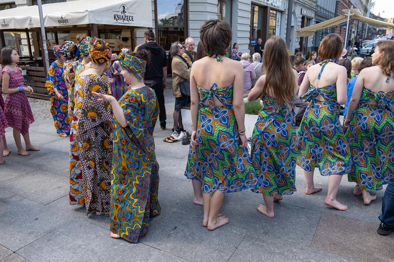 Tu z kolei odbyły się cyrkowe pokazy, choćby fantastyczny taniec w powietrzu na chustach, kołach i trapezach. Ten pochód pn. "Miasto to Teatr" to coroczna tradycja festiwalu teatralnego Kontrapunkt.