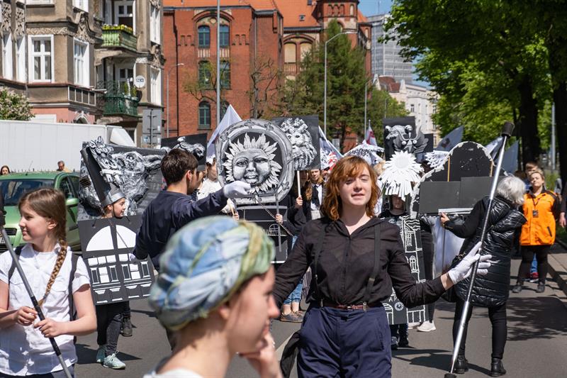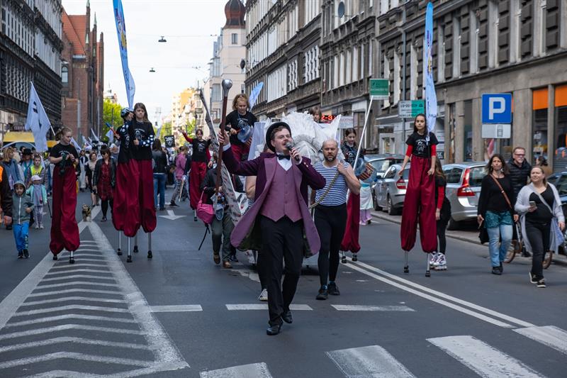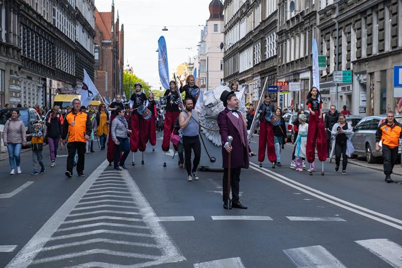 Korowód pełen muzyki, tańca, szczudlarzy oraz cudacznych artystów, którym udało się obudzić maszkarony na fasadach kamienic i zaprosić ich do wspólnej zabawy, przeszedł w sobotę ulicą Jagiellońską w Szczecinie, aż do placu Lotników.