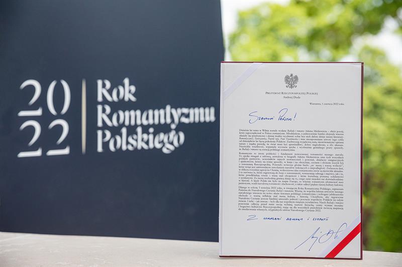 Z okazji Narodowego Czytania prezydent RP, Andrzej Duda, tradycyjnie skierował przesłanie, zachęcając do współtworzenia akcji: „Dwieście lat temu w Wilnie zostały wydane Ballady i romanse Adama Mickiewicza – zbiór poezji, który zapoczątkował w Polsce romantyzm. Młodzieńcze, a jednocześnie bardzo dojrzałe wiersze okazały się przełomowe i dzisiaj trudno wyobrazić sobie bez nich dalsze dzieje naszej literatury. (…) Romantyzm to istota polskości i fundament nowoczesnej tożsamości naszego narodu. To epoka zmagań z zaborcą, utrwalona w biografii Adama Mickiewicza oraz tych wszystkich polskich patriotów, uczestników tajnych stowarzyszeń i powstań, działaczy emigracyjnych i spiskowców, którzy na różne sposoby, w kraju i na obczyźnie, czynem i słowem toczyli bój o suwerenną Rzeczpospolitą” – napisał w liście prezydent.