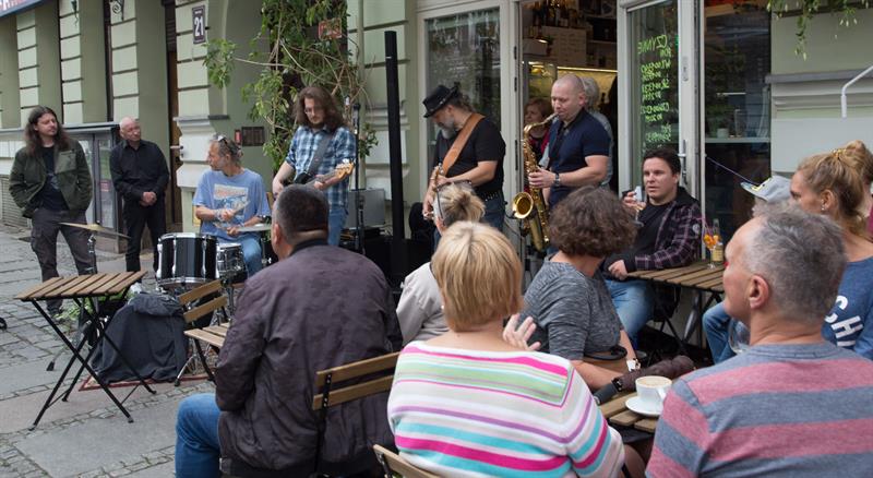 W piątek (10 lipca) ulica Rayskiego w Szczecinie stała się salą koncertową, a sceną – chodnik przed kawiarnią „Artetamina”. To był już kolejny występ w tym miejscu. Wyjątkowy, bowiem ten lokal właśnie skończył roczek. Zgodnie z planami Wojtka Czajkowskiego (prowadzącego kawiarnię), przez ten rok udało się tu stworzyć mini salon artystyczny, w którym spotykają się malarze, muzycy, animatorzy kultury, ludzie pióra... To tu omawia się co warto przeczytać, zobaczyć, gdzie pójść na wystawę, itd.