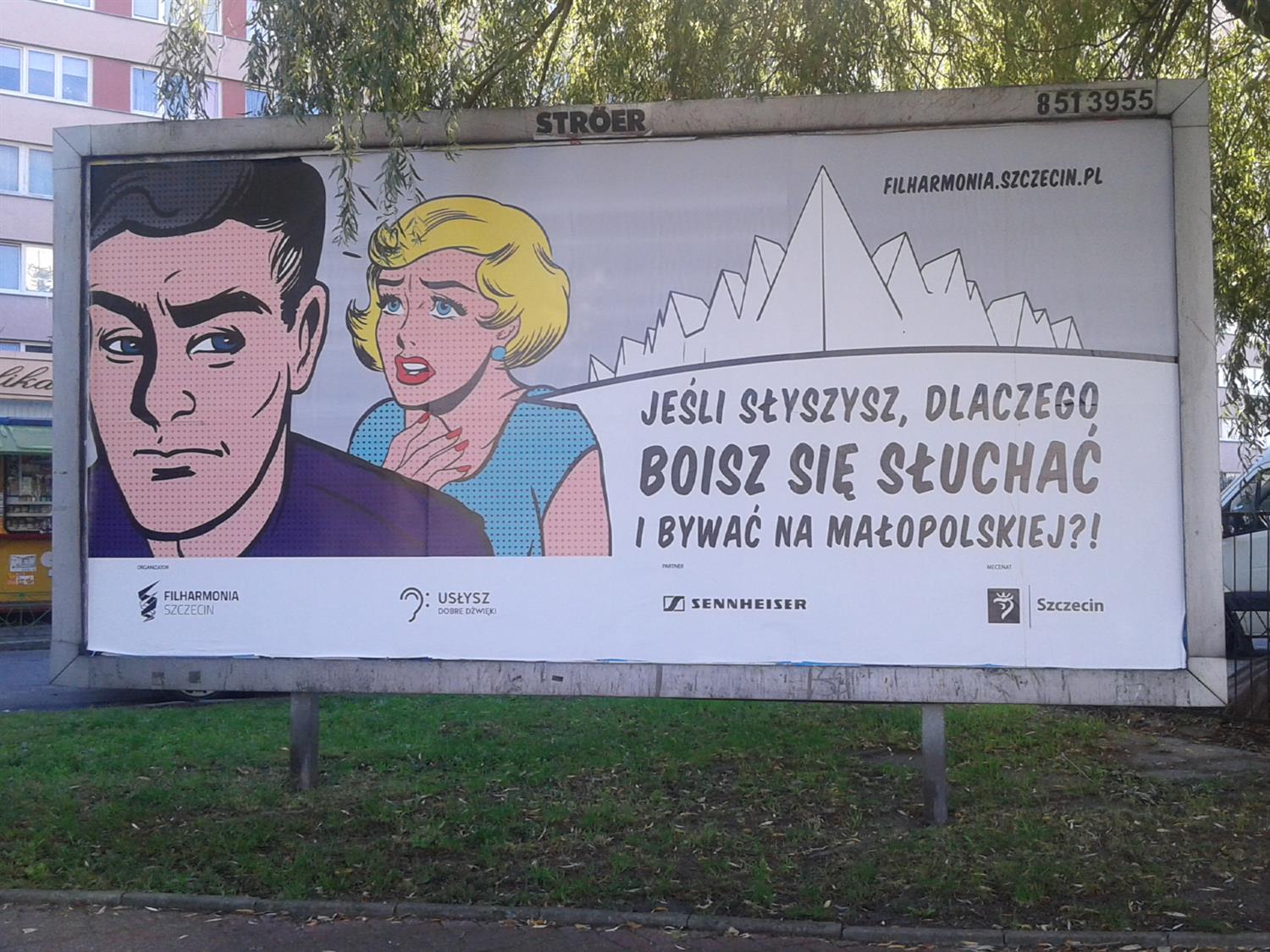 W różnych miejscach Szczecina zobaczyć można kolorowe billboardy, utrzymane w konwencji komiksu. Akcja trwa od kilku tygodni: w pierwszym etapie zachęcała do refleksji nad tym, jak i gdzie słuchamy muzyki, w drugim – zaprasza do szczecińskiej filharmonii.