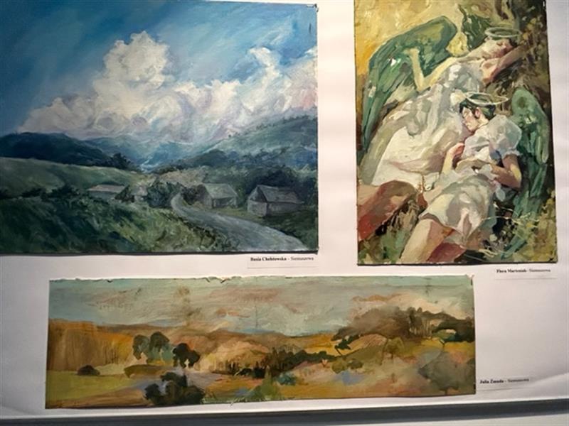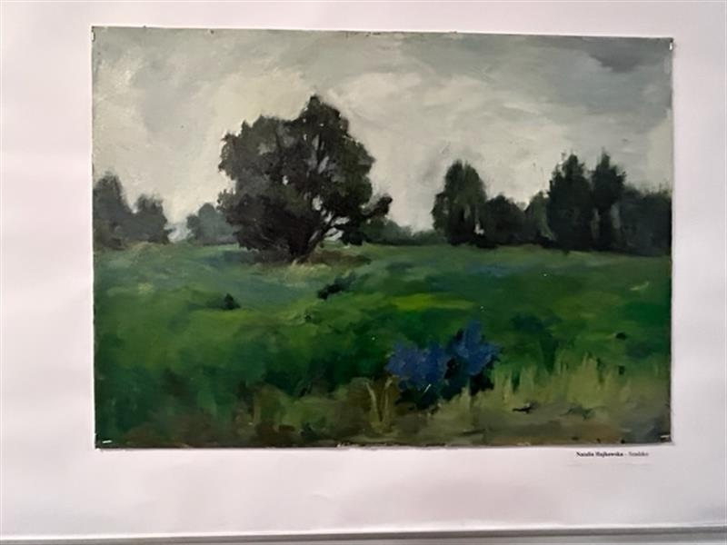 – Na początku wakacji 2022 r. odbył się plener w Ińsku – mówi Stanisław Kokolus. – Był to krótki, trzydniowy plener, w którym wzięło udział ok. 10 uczniów. Dzięki życzliwości pana dyrektora szkoły Ryszarda Jamrożego młodzież zakwaterowana została w szkole. Uczestnicy pozostawili po sobie nie tylko wspomnienie. Podczas pleneru powstał mural przedstawiający żurawie, o wymiarach – 12 m na 2 m. Bezpośrednio po plenerze w Ińsku odbył się kolejny plener w Dobrzanach od 27 czerwca do 1 lipca; podobnie jak w Ińsku wzięło w nim udział 10 uczniów. Zamieszkali w gospodarstwie agroturystycznym Tergieniówka. Plenery w Dobrzanach odbywają się już corocznie od 23 lat i są sponsorowane przez tamtejszą gminę. Poza Dobrzanami młodzież malowała również w okolicznych wioskach, takich jak Bytów czy Szadzko, gdzie tradycyjnie na wzgórzu zamkowym rozpalono ognisko. Na zakończenie pleneru burmistrz Dobrzan Paweł Filip otworzył wystawę poplenerową w bibliotece miejskiej. 14 sierpnia br. natomiast odbył się następny plener we wsi Siemuszowa koło Sanoka. Podczas pleneru powstało wiele pejzaży gór z charakterystycznymi w tym rejonie cerkiewkami. Obecnie prace z 3 plenerów są eksponowane w szkolnej galerii, co najmniej do połowy stycznia 2023 roku. Jury, składające się z nauczycieli malarstwa w naszej szkole, wyróżniło 4 prace; ich zdaniem najciekawsze. Są to prace: Kornelii Orszulak – pejzaż z Bytowa oraz Wzgórze Wisielców w Szadzku Natalii Hajkowskiej, z pleneru z Bieszczad, natomiast prace Flory Marteniak pt. Ofelia 2 i nokturn z Siemuszowej Laury Żabkiewicz. Zapraszamy do obejrzenia wystawy – dodał nasz rozmówca.