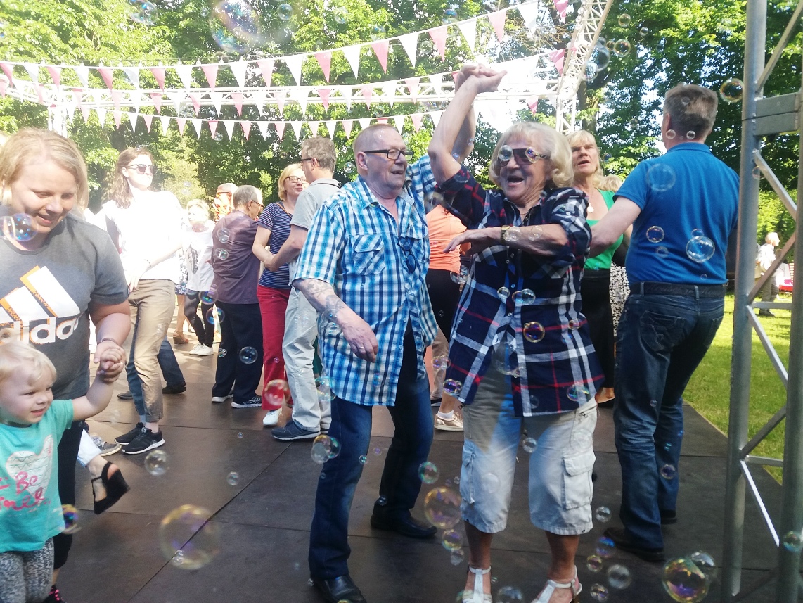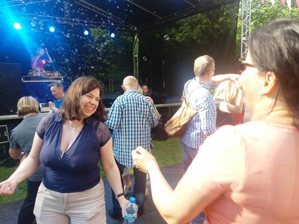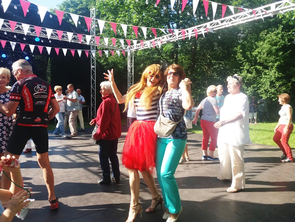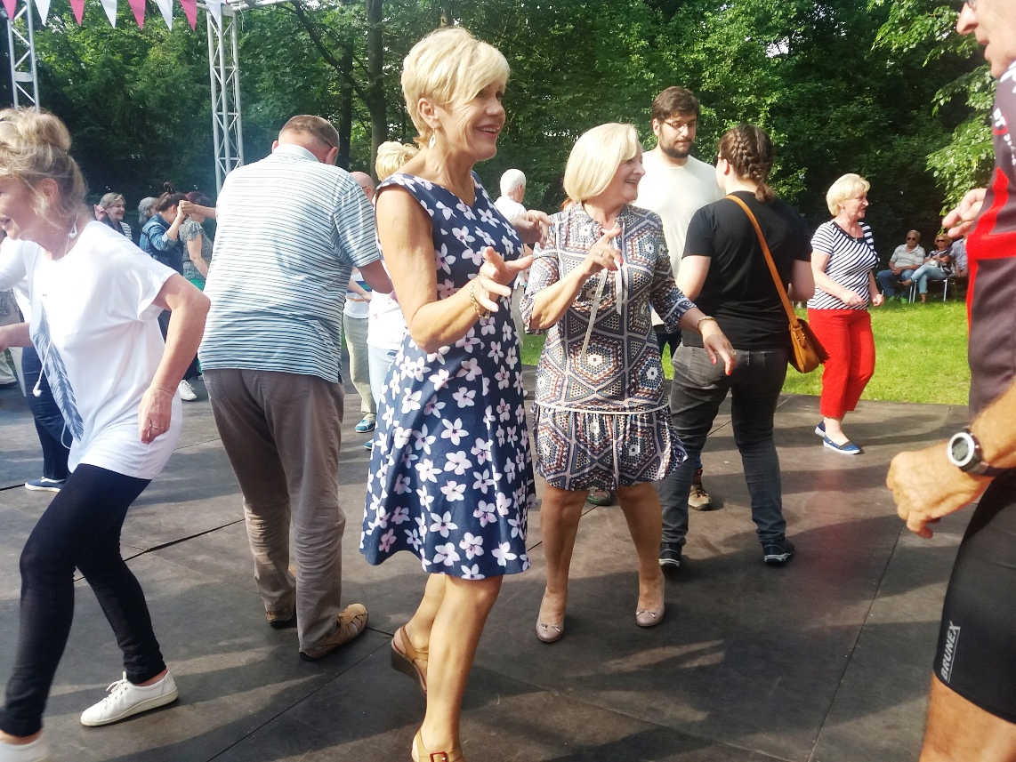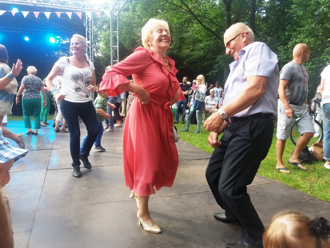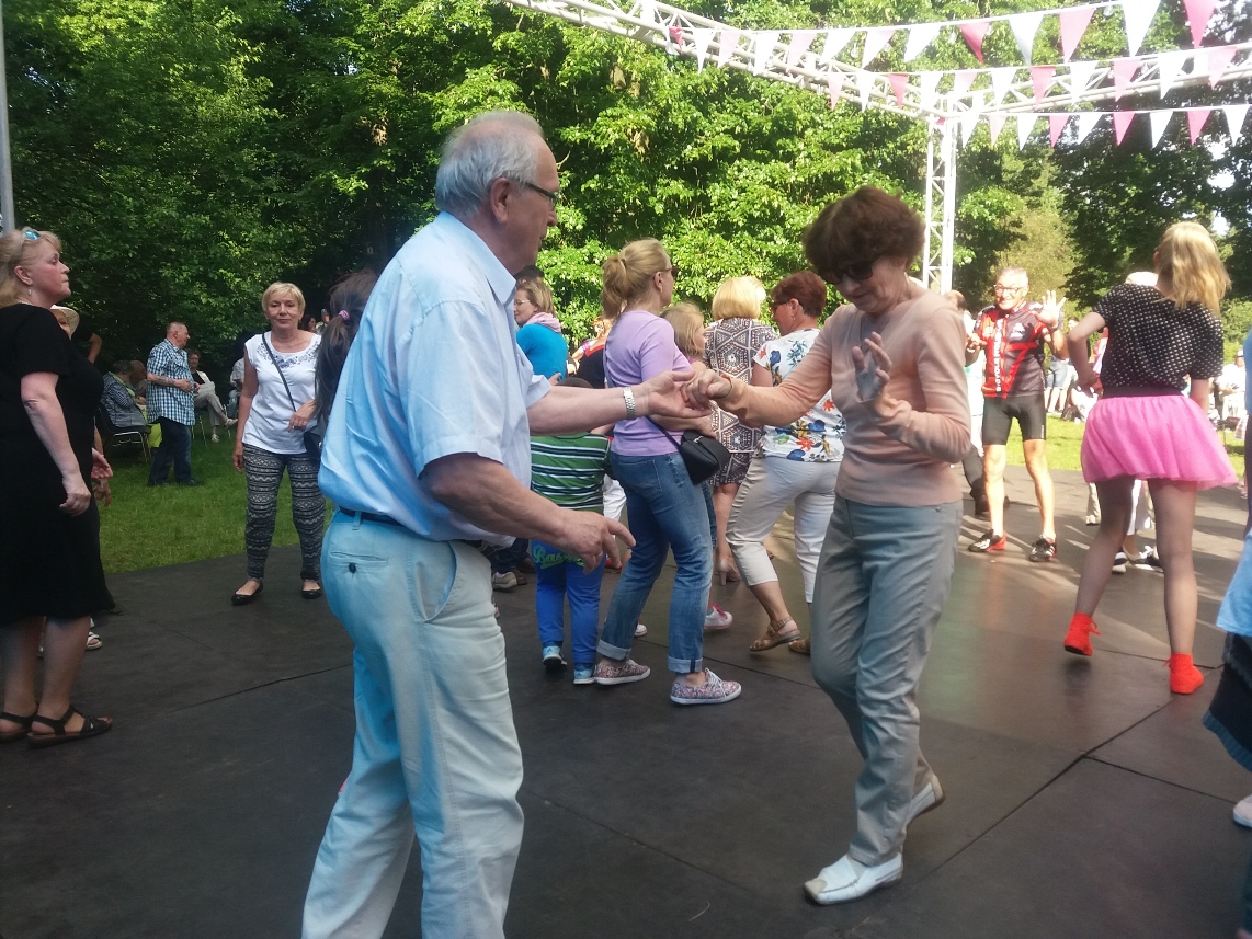 Pani Jadwiga specjalnie na potańcówkę ubrała wirującą sukienkę, bo tańczyć bardzo lubi i wie, że na Różance zawsze jest wspaniała zabawa – wraz z panem Stefanem mają zamiar przychodzić tu przez całe lato. 3-letni Dorian z mamą znaleźli się tu przypadkiem, ale także im się podobały pląsy pod gołym niebem, tak zresztą jak wielu innym szczecinianom, którzy tłumnie przybyli do różanego ogrodu, by poskakać przy znanych i lubianych piosenkach Abby, Niemena, czy Elvisa Presleya. Przy dźwiękach zespołu „Elvis is back” bawili się i mali i duzi, a całą potańcówkę prowadziła dj Meluzyna – Kasia Brzozowska.