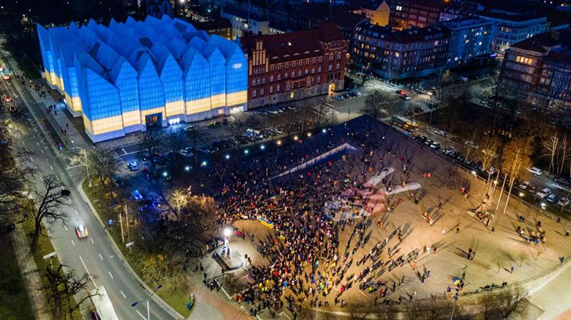 Uwaga! Na profilu facebookowym filharmonii odbędzie się transmisja fragmentu koncertu, podczas którego zostanie zagrany hymn Ukrainy,. W tym dniu budynek szczecińskiej instytucji rozbłyśnie w barwach flagi ukraińskiej.