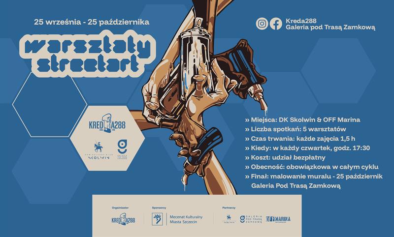 Warsztaty odbędą się w terminie 25 września – 25 października br., w każdy czwartek w DK Klub Skolwin i OFF Marinie. Finał to wspólne malowanie muralu w Galerii Pod Trasą Zamkową.