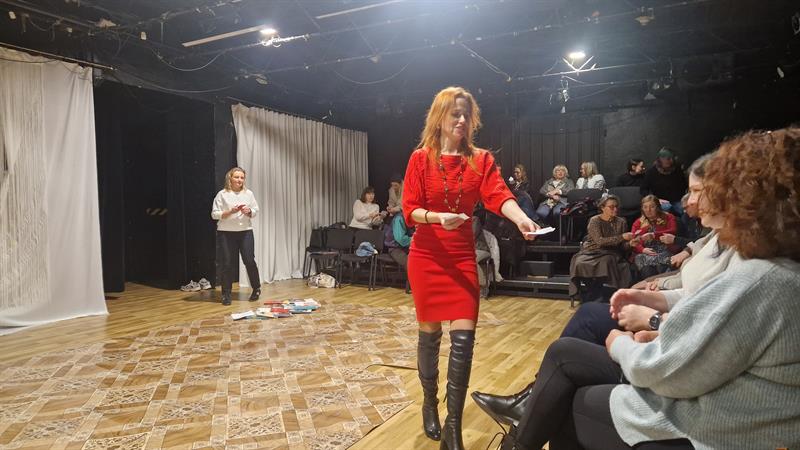 Spotkanie, w którym udział wzięło kilkanaście osób w różnym wieku na Scenie Nowe Sytuacje w Teatrze Współczesnym, odbyło się w piątek jako wstęp i zaproszenie na spektakl „Dom niespokojnej starości”, który swoją premierę będzie miał 22 lutego. Miało ono formę warsztatów i polegało na aktywnym udziale gości, zachęcanych do interakcji przez prowadzącą.