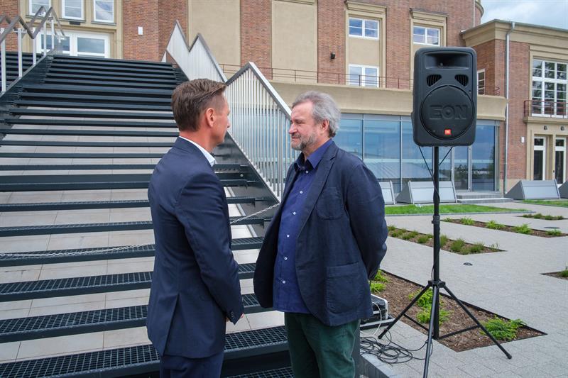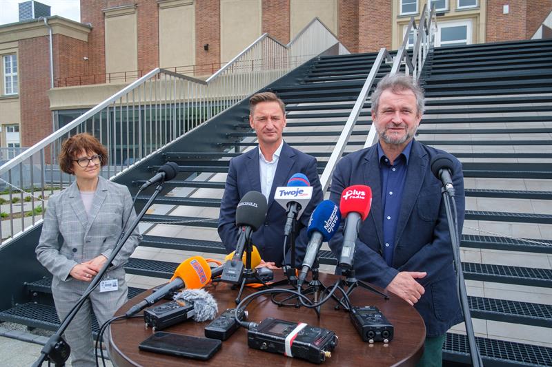 Marszałek województwa zachodniopomorskiego Olgierd Geblewicz i Adam Opatowicz, dyrektor TP, zaprosili dziennikarzy na konferencję prasową przed rozbudowanym obiektem. Na razie do środka nie można jeszcze wejść - bo trwają tam ostatnie prace.