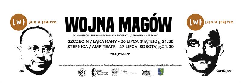 Projekt „Człowiek-Maszyna”, w ramach którego realizowane jest widowisko "Wojna Magów", to autorski program warsztatowo-artystyczny, realizowany na terenie Stepnicy i Szczecina od 15 do 28 lipca. Głównym celem projektu jest rozwój kreatywności oraz twórcze spędzenie wolnego czasu podczas wakacji przez młodzież w wieku 13-18 lat. W ramach Lata w Teatrze młodzi ludzie pracują pod okiem instruktorów w czterech grupach warsztatowych: teatralno-ruchowych, muzycznych, kostiumowo-scenograficznych i promocyjno-multimedialnych. Lato w Teatrze jest programem Instytutu Teatralnego im. Zbigniewa Raszewskiego finansowanym ze środków Ministerstwa Kultury i Dziedzictwa Narodowego. Więcej informacji o widowisku na https://www.facebook.com/teatrwkrzywymzwierciadle/, na temat programu na: www.latowteatrze.pl www.facebook.com/programLatowteatrze. ©℗