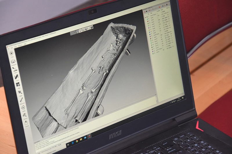 Znalezisko jest własnością Muzeum Narodowego w Szczecinie, ale zdeponowane zostało do końca września w Kołobrzegu. To właśnie konieczność zwrotu szkieletu stała się inspiracją dla kołobrzeskich muzealników do tego, aby wykonać jego kopię. Możliwe jest to drukarką 3D. Problem polega jednak na tym, że wielowiekowe kości są niemal czarne i przy pomocy tradycyjnych skanerów zeskanować ich się nie da. Zadania podjęła się jednak firma WOLF 3D z Warszawy, która dysponuje urządzeniem umożliwiającym digitalizację takiego eksponatu.