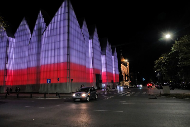 W trzydziestą rocznicę podpisania porozumień sierpniowych i osiemdziesiątą rocznicę wybuchu II wojny światowej wieczorami od piątku (30 sierpnia) do 1 września fasada Filharmonii Szczecińskiej świeci się w biało-czerwonych barwach.