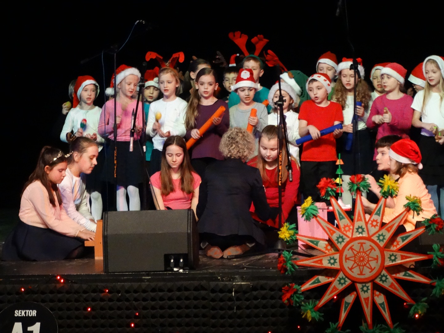 Poza wspomnianym, znakomitym zespołem z Podhala, publiczność usłyszała i zobaczyła na scenie dwie orkiestry szkolne pod dyrekcją Grażyny Wieteski, zespół perkusyjny, chór szkolny, zespół Zabawka pod dyrekcją Agnieszki Szpakowskiej, chór drugoklasistów, solistów: wokalistów - Darię Górską (z towarzyszeniem nauczycielek) i Pawła Juraszka oraz altowiolistkę Amelię Krzyżanowską, kapelę Zespołu Pieśni i Tańca "Szczecinianie", chór Szkoły dla Chłopców "Nawigator". Był też element taneczny podczas wieczoru - etiuda podhalańska w wykonaniu drugo i trzecioklasistów. Młodzi oraz dorośli artyści wykonali utwory świąteczne, pastorałki i kolędy. Zabrzmiały zatem te bardzo popularne, jak "Bóg się rodzi" czy "Przybieżeli do Betlejem", ale też mało znane, choćby polsko-gruzińska kolęda "Duch gór" w wykonaniu grupy Trebunie - Tutki oraz "Świetlista kolęda" zagrana przez kapelę "Szczecinianie".
