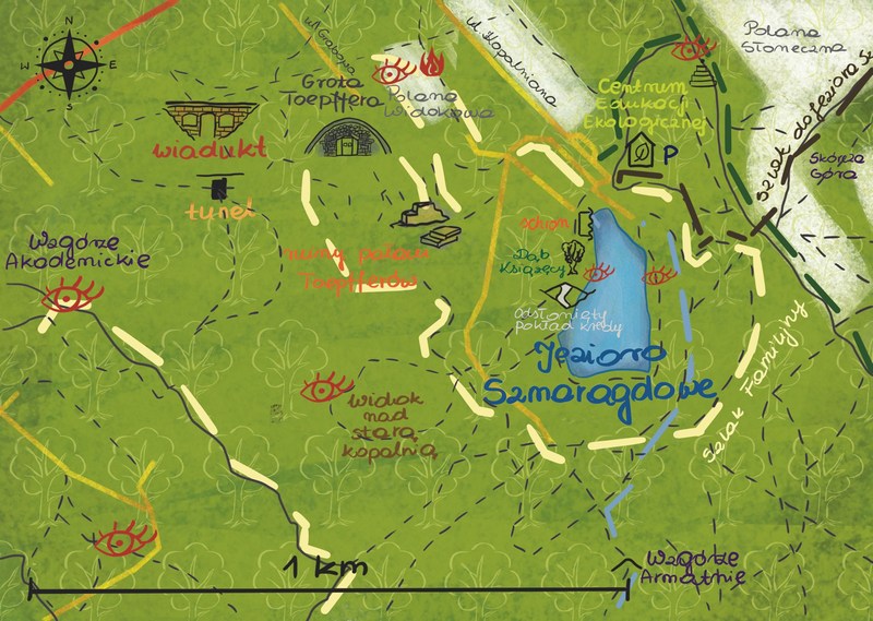 Na godz. 10 zaplanowano początek dwugodzinnego spaceru pt. „W poszukiwaniu tajemnic Jeziora Szmaragdowego”, prowadzonego przez autora przewodnika, Artura Gizę -Zwierzchowskiego. Biletem uczestnictwa w tym wydarzeniu jest posiadanie ze sobą weekendowego wydania „Kuriera Szczecińskiego" i egzemplarza wspomnianej książki. Wszyscy, którzy nie zdążyli jeszcze jej nabyć, będą mogli to zrobić na miejscu w niezwykłej scenerii jeziora. Początek wydarzenia - przy Szmaragd Cafe, obok mostka nad jez. Szmaragdowym (ul. Kopalniana 2 w Szczecinie).