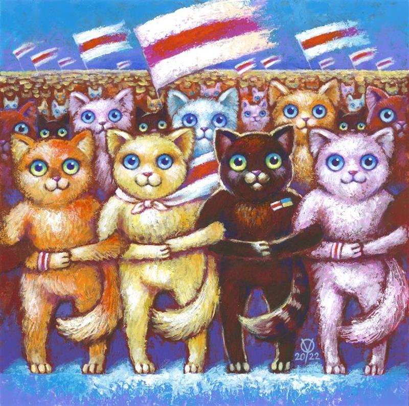 Wystawa składa się na 20 dużych plakatów, które są utworzone na podstawie prac białoruskiej malarki Volhi Jakubouskiej. Białorusini na obrazach są przedstawiani jako koty walczące z psami (reżimu Łukaszenki), maszerujące pokojowo pod biało-czerwono-białą flagą narodową lub biorące zbroję, by pomóc Ukrainie w walce o niepodległość. Każda z prac z cyklu „Kotusie z Białorusi” dedykowana jest określonemu tematowi, osobie lub wydarzeniu.