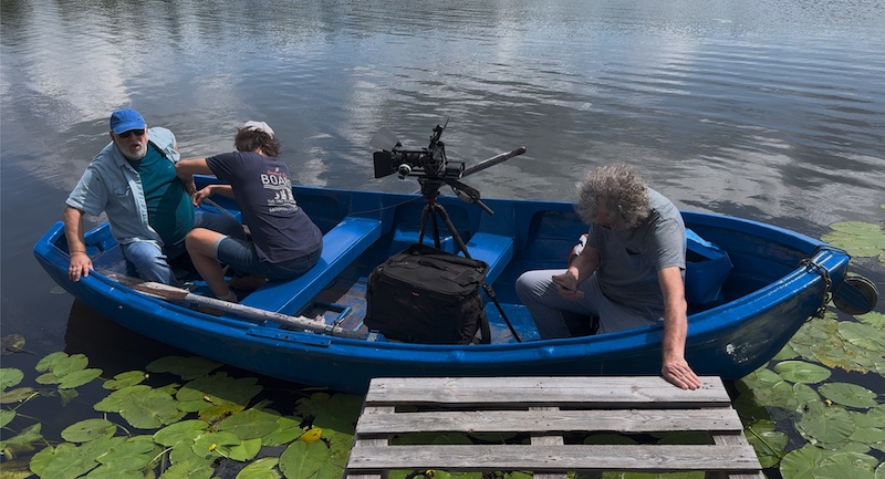 Pod koniec marca tego roku filmowcy uwiecznili ledwie budzącą się do życia przyrodę Kępy Karsiborskiej z jej porosłymi wyschniętą trzciną rozlewiskami i szykującym się do wiosny ptactwem wodnym. Już w połowie kwietnia realizator i operator pojawili się w równie urokliwym Czarnocinie nad Zalewem Szczecińskim, by podglądać skrzydlatą faunę z czatowni. Przy okazji zafascynował ich widok dziesiątek pasących się na wolności koników polskich i długorogich, kudłatych highlanderów (stara szkocka rasa bydła). Na początku maja przyszła wreszcie pora na wyprawę katamaranem na wyspę Sadlińskie Łąki, na której żył i pracował niemiecki ornitolog. Niczym ekspedycja w amazońskiej dżungli, obładowani sprzętem przez polanę porośniętą kwitnącym czosnkiem niedźwiedzim rozsiewającym się od czasów Robiena, dotarli do ni to tablicy pamiątkowej, ni to steli, ni to symbolicznego nagrobka, który w latach 90 ubiegłego wieku postawili dla upamiętnienia przyrodnika szczecinianie. Przypomnijmy, że on i jego żona Ewa, zostali po wojnie zamordowani przez sowieckich żołnierzy. Z domostwa, które jednocześnie było stacją badawczą, pozostały tylko schody i część fundamentów.