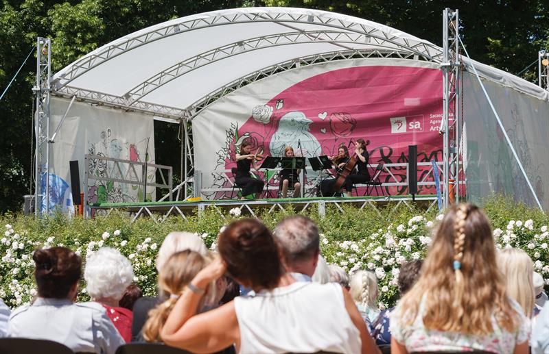 W niedzielnym (9 czerwca) odcinku reaktywowanego cyklu południowych koncertów Różanego Ogrodu Sztuki zabrzmiał smyczkowy kwartet uczennic Zespołu Szkół Muzycznych im. Feliksa Nowowiejskiego w Szczecinie. Melomani oklaskiwali Natalię oraz Maję Grzegorczyk - skrzypce, Marię Matinek - altówka oraz Emmę Kocój - wiolonczela, zespół smyczkowy pod opieką Ireny Olejnik.
