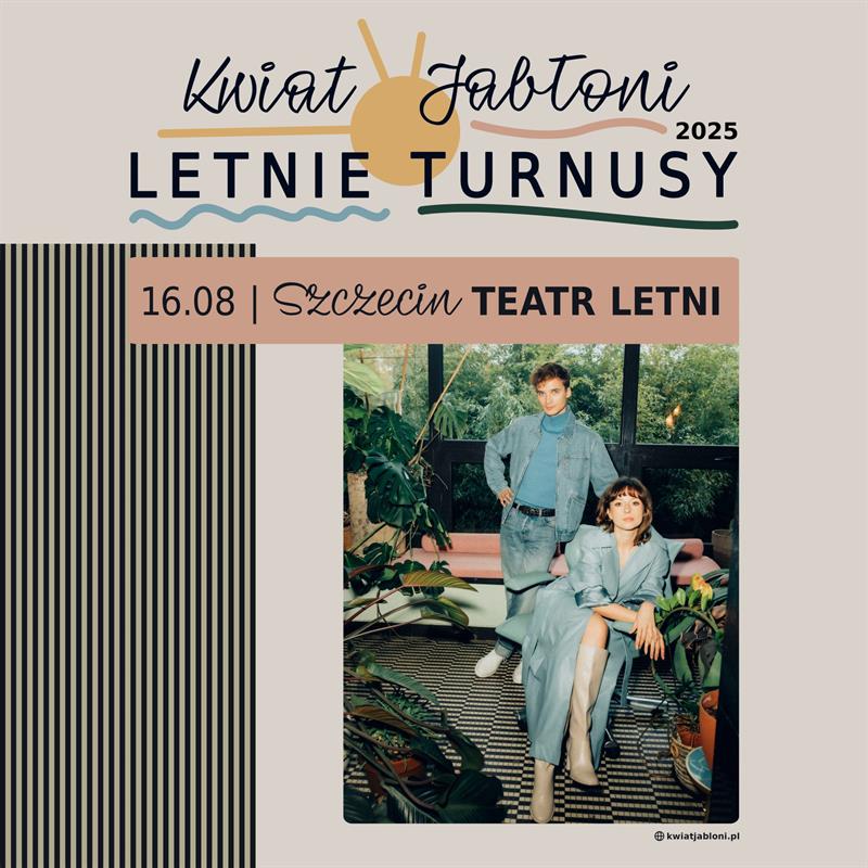 W szczecińskim Teatrze Letnim w sobotę o g. 20 zagra ceniony zespół Kwiat Jabłoni. Ten duet wykonuje muzykę folkową, popową, folk pop, bluegrass, indie folk, indie pop i elektronikę. Zespół tworzy rodzeństwo Katarzyna Sienkiewicz i Jacek Sienkiewicz (dzieci Kuby Sienkiewicza), funkcjonuje od marca 2018. Mają na koncie takie albumy jak między innymi „Niemożliwe” czy „Pokaz slajdów”.