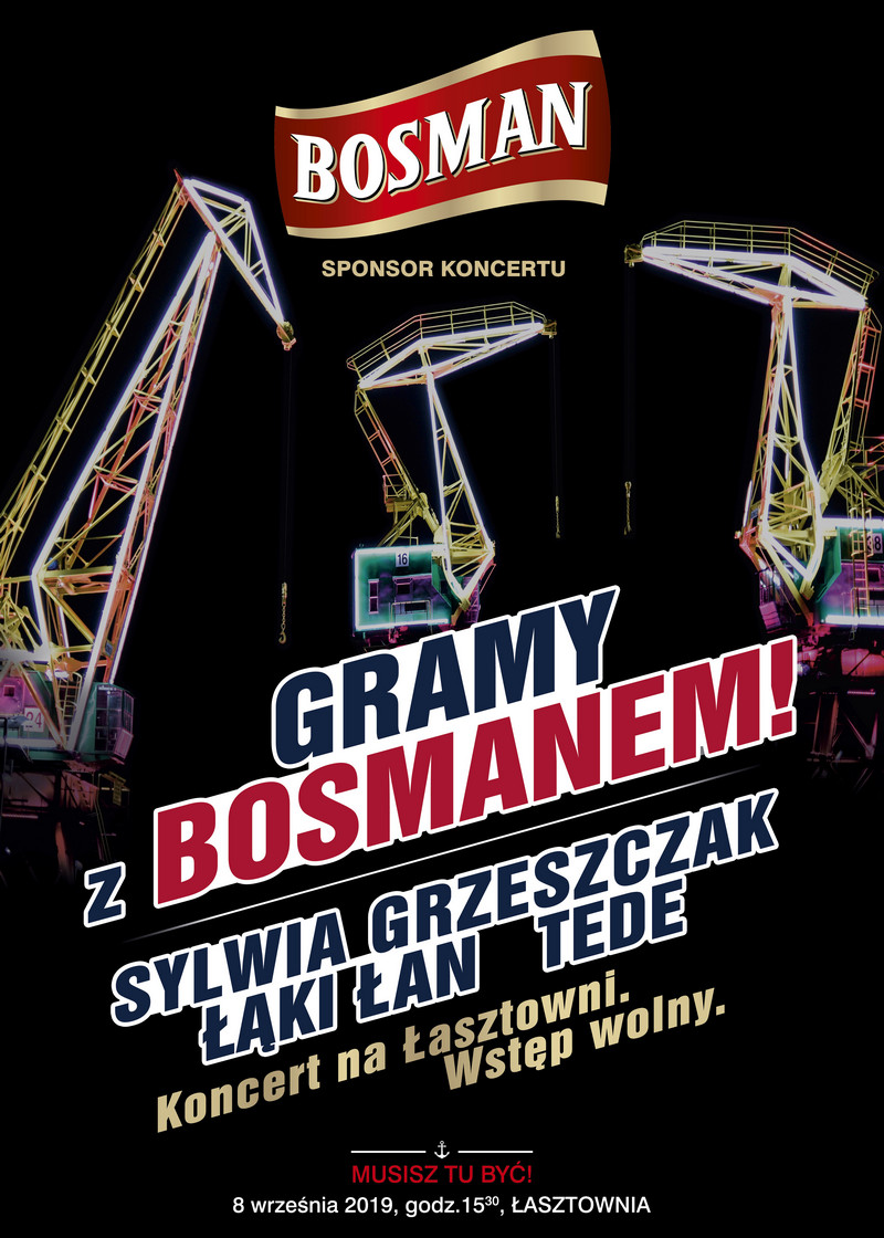 W niedzielę o godz. 15.30 na szczecińskiej Łasztowni rozpocznie się koncert „Gramy z Bosmanem”. Na scenie wystąpią Sylwia Grzeszczak, Łąki Łan i Tede – artyści, którzy prezentują zupełnie inne style muzyczne.