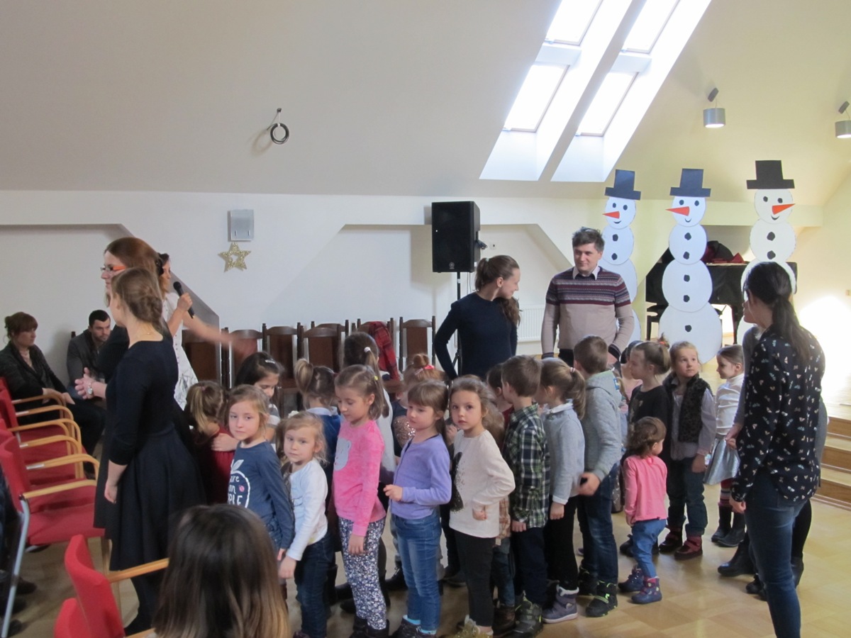 Lepienie bałwana, rzucanie się śnieżkami, dokarmianie ptaków oraz jazda ze stoku na nartach - to tylko niektóre atrakcje niedzielnego (29 stycznia) „Rodzinnego poranku muzycznego", zorganizowanego po raz kolejny w sali koncertowej stargardzkiej Państwowej Szkoły Muzycznej. Oczywiście, wszystkie zimowe gry i zabawy wykonano „na sucho", nie wykorzystując w tym celu śniegu, żywych zwierząt ani elementów górskiego krajobrazu. Ale dzięki pomysłowości prowadzącej Agaty Spodniewskiej-Kanarek oraz akompaniującym jej pianiście Krzysztofowi Figlowi i szczecińskiemu puzoniście Grzegorzowi Włodarczykowi, koncert zapewnił najmłodszym uczestnikom mnóstwo śmiechu i dobrej rozrywki. Zimowy krajobraz stworzyła też scenografia przygotowana przez Jolantę Brejdak i młodzież z MDK. Patronem medialnym muzycznego spotkania jest „Kurier Szczeciński". ©℗