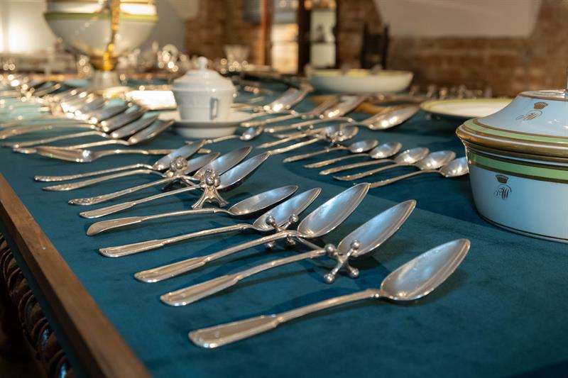 Warto dodać, że większość eksponatów pochodzi ze zbiorów Muzeum Pomorza Środkowego w Słupsku. Instytucja ta zakupiła bowiem cenne, unikatowe srebrne i platerowane sztućce wykonane (w przeważającej ilości) w latach 1875-1939. Wśród nich najwięcej jest akcesoriów uznanych wytwórni warszawskich – Frageta i Norblina oraz różnych wytwórni niemieckich, a także pojedyncze przykłady wyrobów z wytwórni braci Henneberg, Plewkiewicz i Spółka, firm amerykańskich (np. J. E. Caldwell & Co, Rogers Bros), francuskich (Christofle).