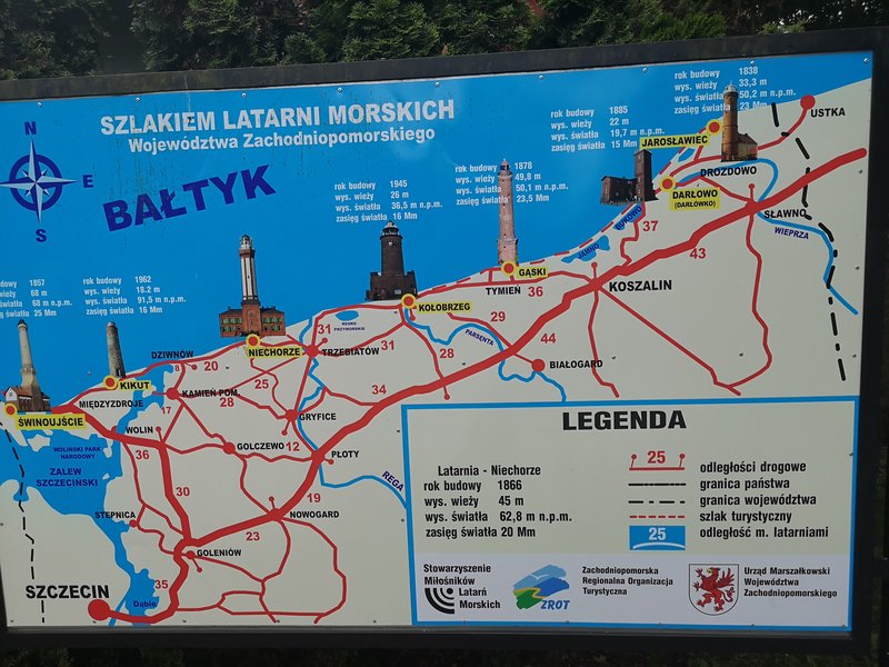 Budowę latarni morskiej w Niechorzu zaczęto w 1860 roku i zajęła ona 6 lat. Zbudowana jest z cegły licowej. Więcej szczegółów możemy przeczytać na tablicy informacyjnej koło latarni. Tam także jest plansza informująca o innych latarniach morskich na naszym wybrzeżu. Z góry widać park miniatur latarni morskich.
