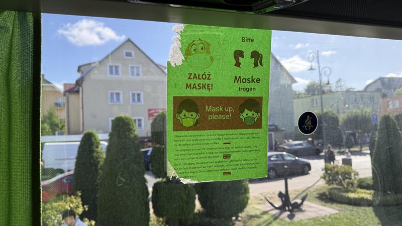 Podróżujący autobusami natknąć się jeszcze mogą na informacje z „czasów covida”. „Załóż maskę"! — krzyczy komunikat z okna autobusu. Wiemy, że wciąż można założyć, ale już szczęśliwie nie trzeba. Interesująca jest część komunikatu dotycząca kierowców: „Obowiązek zakrywania ust i nosa nie dotyczy kierowców. Mogą oni zakrywać twarz w czasie jazdy, ale muszą pamiętać o niezakrywaniu oczu, uszu, włosów, by identyfikacja kierowcy była możliwa”. Dowiadujemy się w końcu, dlaczego kierowca nie powinien zakładać maski na oczy. Żeby go można było zidentyfikować.