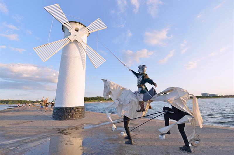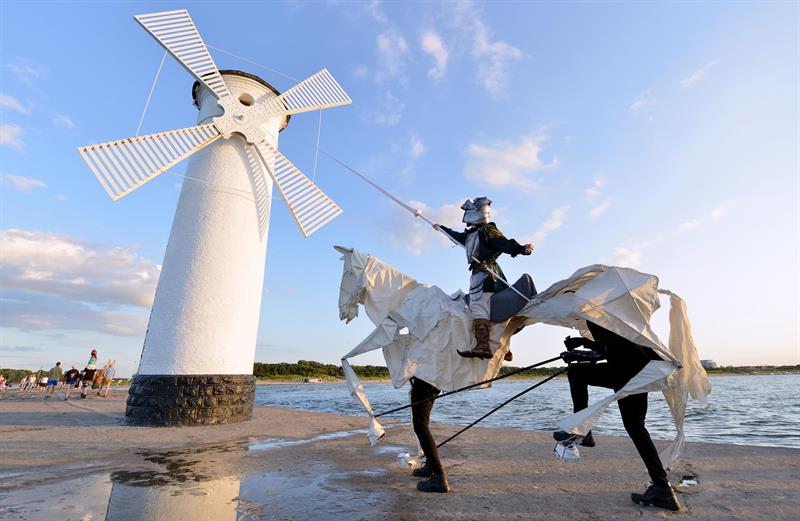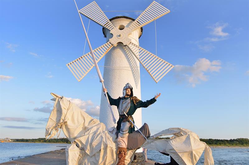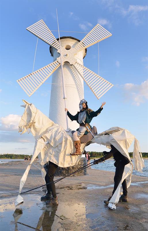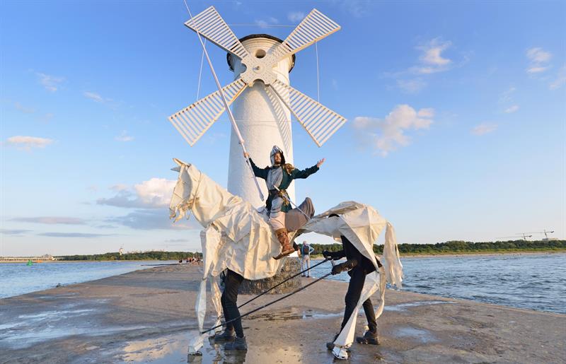 Co ciekawe od 1874 roku z wiatrakiem (Mühlenbake) nie walczył ani jeden Don Kichot. Do teraz! Goszczący na 4. Markowym Festiwalu słynny błędny rycerz przybył na falochron na grzbiecie Rosynanta i stoczył walkę ze skrzydłami wiatraka….