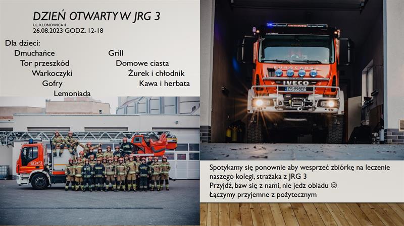 Po raz kolejny będzie można połączyć dobrą zabawę z pomaganiem. Bo strażak ze Szczecina, Paweł Szulc, wciąż potrzebuje wsparcia w walce z nowotworem. Na dzień otwarty zaprasza więc wszystkich gotowych tego wsparcia udzielać Jednostka Ratowniczo-Gaśnicza nr 3 przy ul. Klonowica. To w niej służył Paweł. Zaproszenie jest na najbliższą sobotę (26 sierpnia). Początek o godz. 12, przewidywany czas zakończenia imprezy – około godz. 18.