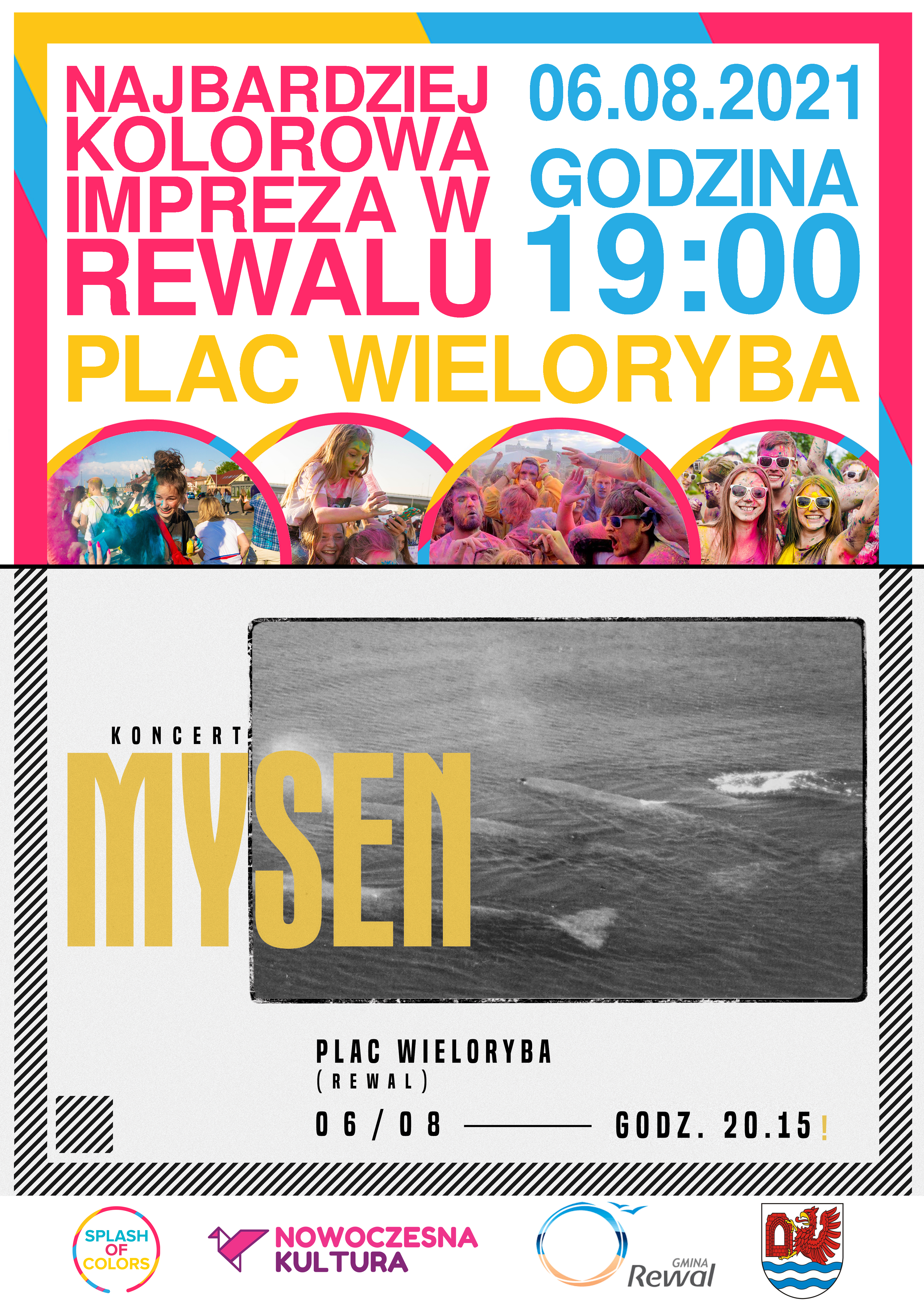 W piątek (6 sierpnia) i sobotę (7 sierpnia) w gminie Rewal czekają liczne atrakcje dla najmłodszych i ich rodziców. Organizatorzy zapraszają na festiwal baniek, poszukiwania skarbów, festiwal kolorów i wieczony koncert na placu wielorybów w Rewalu. Szczegóły na plakatach.