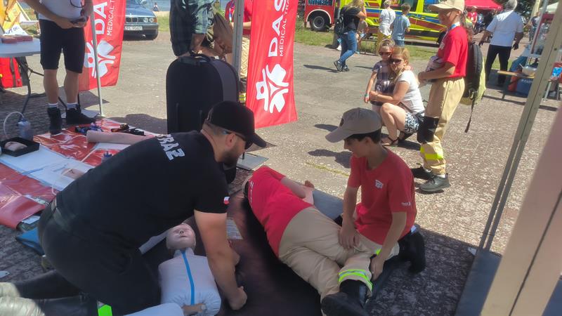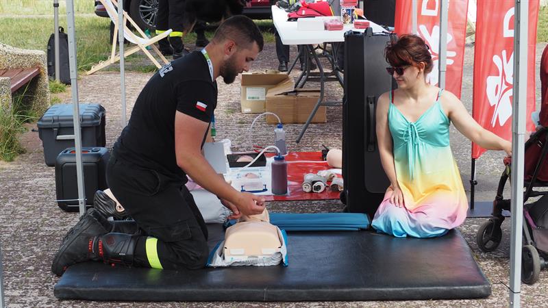 – Pokazujemy, jak się zachowywać w czasie wakacji, aby bezpiecznie dotrwać do ich końca – mówił podczas tego spotkania na plaży Grzegorz Miśkiw, prezes OSP Trzebież. – Pokazujemy m.in., jak udzielić pierwszej pomocy. To wiedza i umiejętność, która pozwoli nam uratować życie osoby, u której dojdzie do zatrzymania krążenia. Te pierwsze chwile są tak naprawdę najważniejsze. Jak ktoś tutaj poćwiczy – pod okiem instruktora, na fantomie – to poźniej będzie mu łatwiej wprowadzić to w życie.