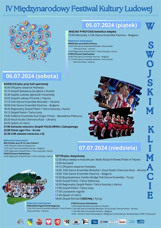Kozielice zapraszają na 4. edycję Międzynarodowego Festiwalu Kultury Ludowej „W swojskim klimacie”, który odbędzie się w trzech miejscowościach - Mielno Pyrzyckie, Kozielice oraz Tetyń. W programie koncerty grup międzynarodowych (m.in.: z Macedonii, Bułgarii, Ukrainy, Turcji), występy zespołów z różnych części regionów Polski (zespoły regionalne, oraz z Kaszub, Poznania, Siekierek Wielkich), warsztaty z tradycyjnego śpiewu i tańca ludowego (grupy dziecięce), prezentacja produktów lokalnych, atrakcje dla dzieci, w tym – wesołe miasteczko.