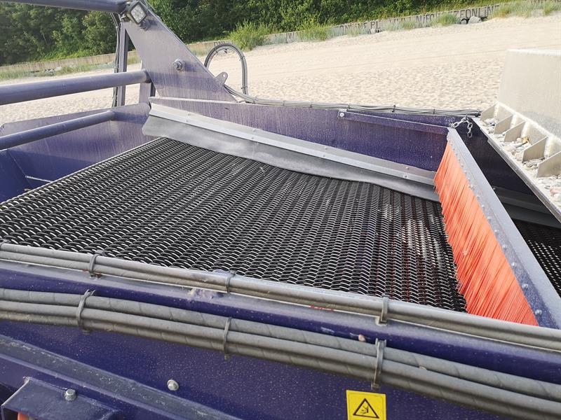 Jak działa urządzenie, które ciągnie potężny traktor (niebawem będzie nowy)? Na przedzie maszyny jest obracający się walec z ostrymi kłami, które przeczesują piasek na głębokość ok. 15 cm. Znalezione odpady wpadają na obracającą się stalową siatkę, która działa jak sitko. Przesiewa piach, a śmieci wrzuca do potężnego pojemnika. Na końcu maszyny przesuwa się taśma, która wygładza piasek, na którym wypoczywają plażowicze.
