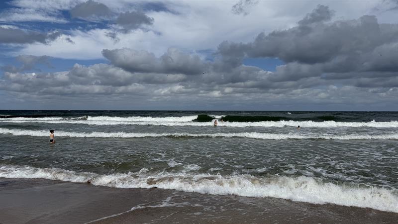 Po południu, gdy fale były już trochę niższe, ale jednak wciąż było niebezpiecznie i powiewała czerwona flaga, na odcinku "granicznym" niestrzeżonym, w morzu kąpało się kilkanaście osób, w tym dzieci. Odcinek strzeżony, gdzie sięga nadzór i uprawnienia ratowników – nadal pusty. ©℗