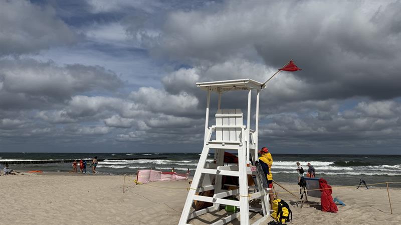 Czerwone flagi na kąpieliskach oznaczające m.in. wysokie fale i silne prądy wsteczne, nie odstraszają plażowiczów przed kąpielami w Bałtyku.